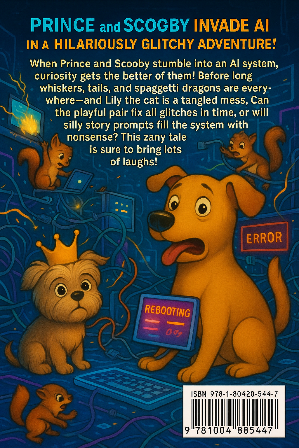 When Prince and Scooby stumble into an AI system, curiosity gets the better of them! Before long whiskers, tails, and spaggetti dragons are everywhere and Lily the cat is a tangled mess. Can the playful pair fix all the glitches in time, or will silly story prompts fill the system with nonsense?