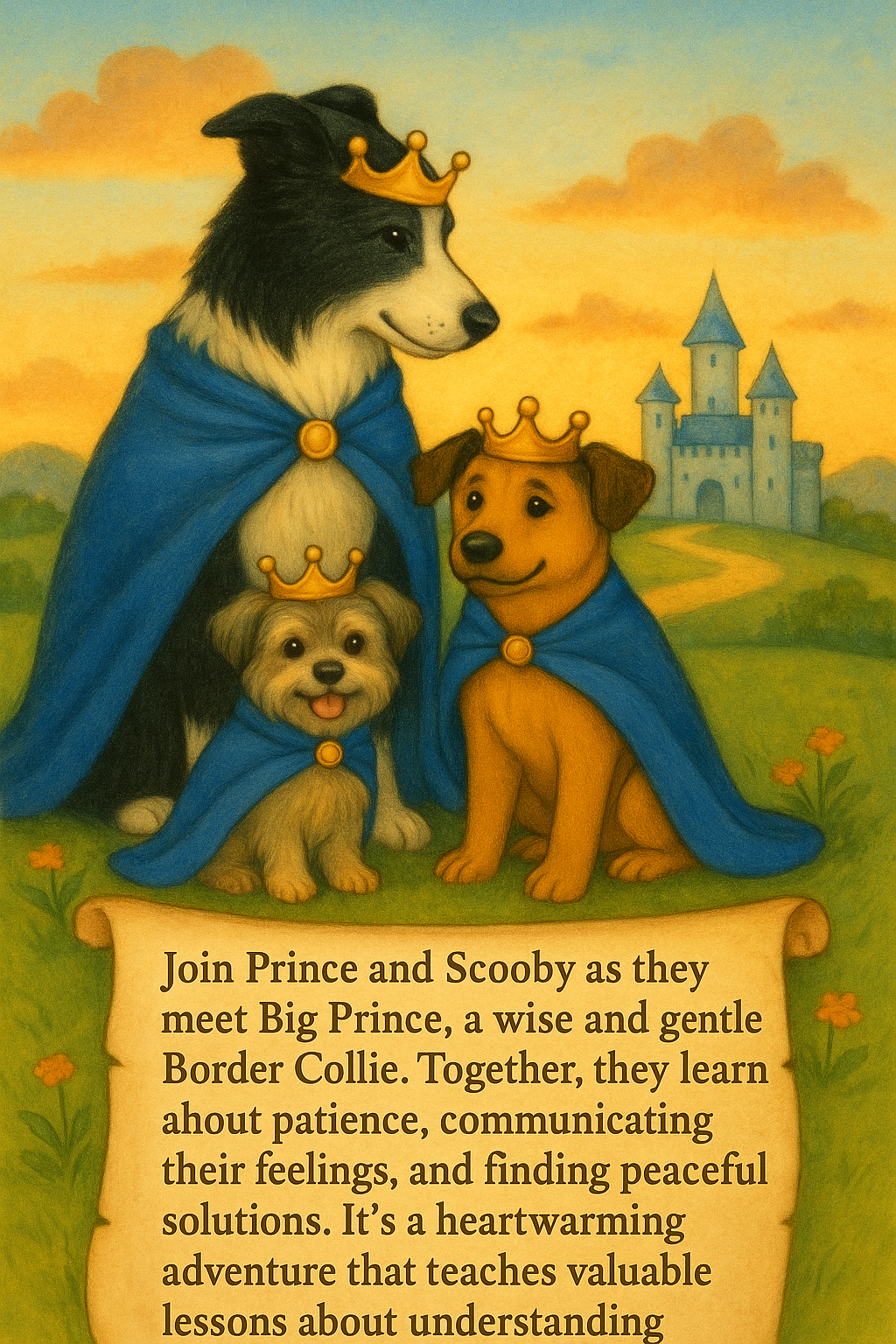 Join Prince and Scooby as they meet Big Prince, a wise and gentle Border Collie! Together, they learn about patience, communicating their feelings, and finding peaceful solutions.
